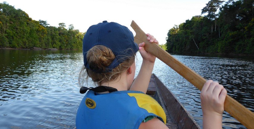 Het absolute hoogtepunt voor veel gezinnen is de 4-daagse tour naar Danpaati River Lodge. De reis ernaartoe, drie uur rijden naar Atjoni en vervolgens twee uur varen in een korjaal, is goed te doen voor ze. Afwisseling tijdens de vakantie is prettig voor kinderen. Onderweg bewonder je de groene oevers en de prachtige natuur. Mia genoot enorm van de tocht; haar dochter vond het soms wat lang duren maar dat was snel vergeten zodra ze aankwamen op Danpaati: een warm welkom, een lekkere lunch en een lodge midden in de natuur.